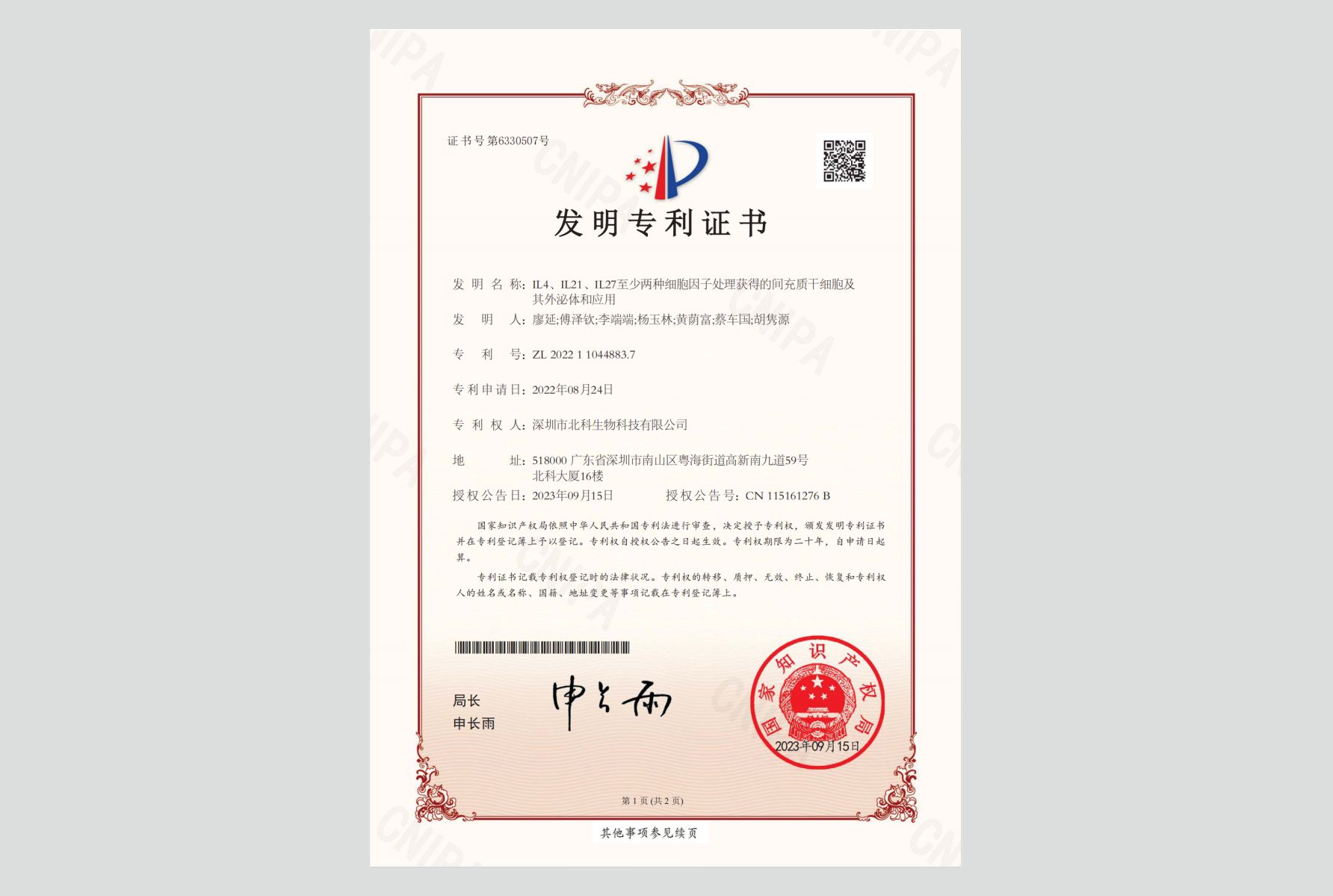 停止2024年1月,北科生物在细胞范畴已请求207项专利,此中162项取得受权